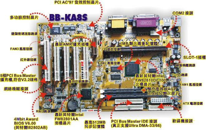 最新 4Mbit Award BIOS V6.0: 支援PnP, PCI 2.2, CD-ROM, ATAPI, LS-120, 及任何IDE