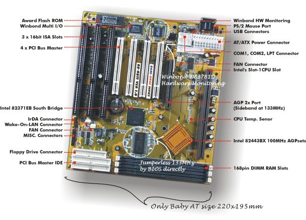 W83781D Hardware monitoring (with temp. senor); ISO-9002 manufacture certificate |