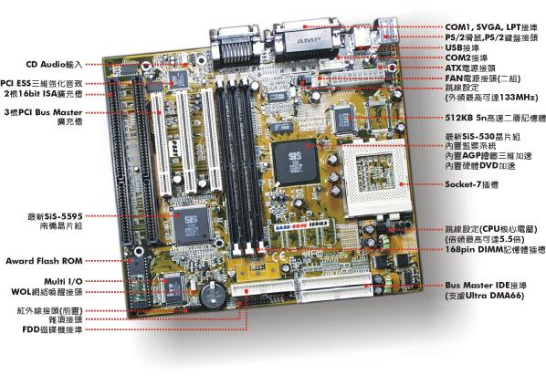 包括AMD-K62 400MHz, Cyrix-MII及IDT C6-2處理器 |